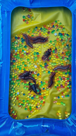 Prepacked waterbead and bug kit comes with unlocked waterbeads and some bugs. Soak waterbeads in water for 3 hours, drain water and add bugs to sensory bin for a great sensory bin experience. Inflatable sensory tray not included. WARNING Not for children under age 3 or for children still placing items in their mouths. Chocking hazard. ADULT SUPERVISION ESSENTIAL.