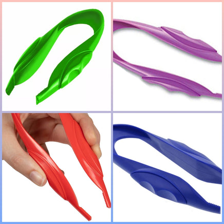 The brightly coloured jumbo tweezers are perfectly sized for little hands and feature ergonomic depressions to help develop the pincer grasp. They are very popular with teachers and occupational therapists. Sold individually or by pack of 4.